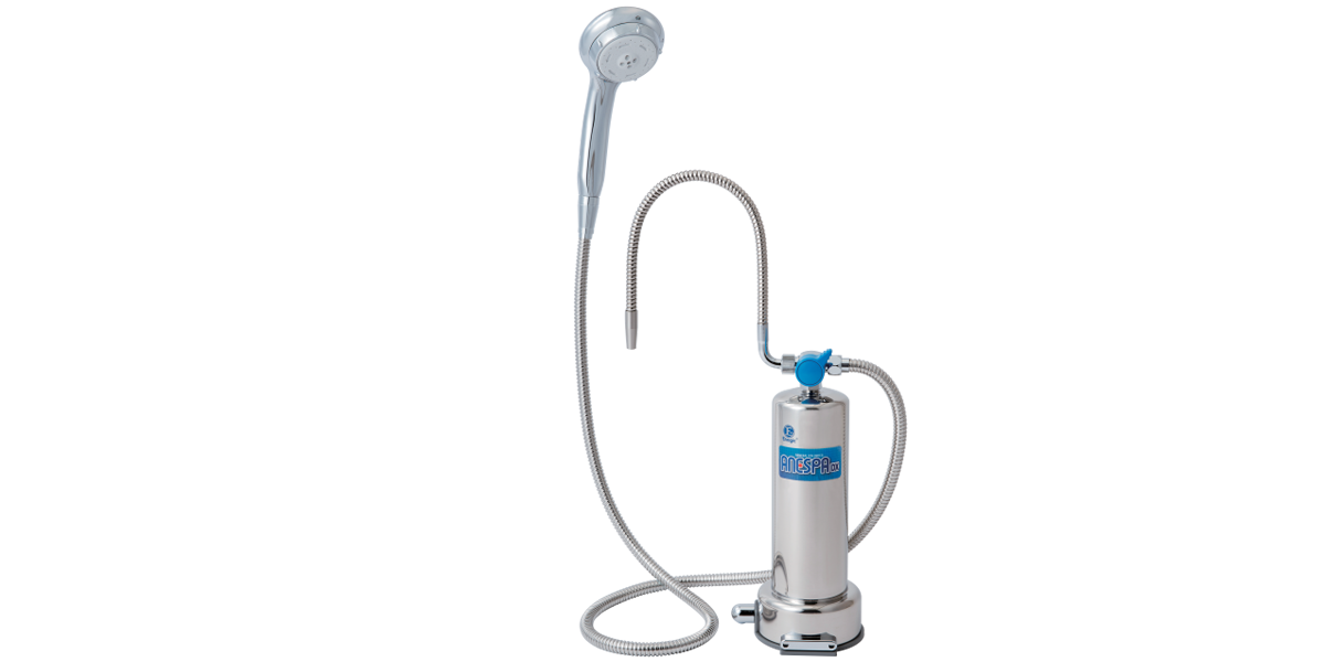 ANESPA DX produces a continuous stream of healthy ionized mineral water. With a new, larger ceramic cartridge that removes almost 100% of chlorine and other harmful substances in your tap water, and adds safe, moisturizing minerals that are healthy for your skin and hair. Enjoy a lovely shower or bath in ANESPA DX hot spring water!