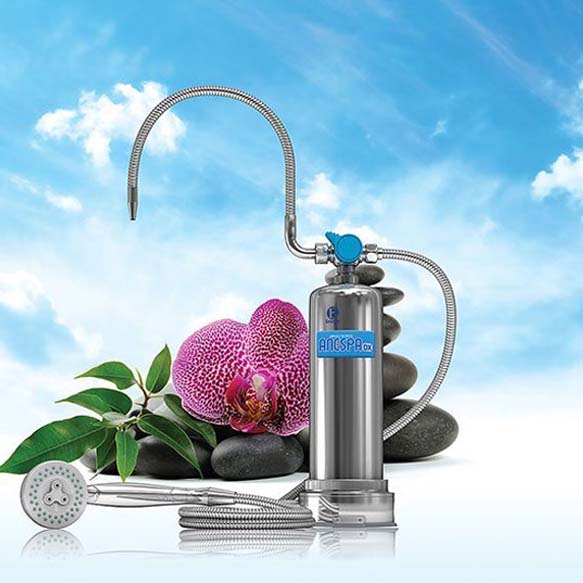 ANESPA DX produces a continuous stream of healthy ionized mineral water. With a new, larger ceramic cartridge that removes almost 100% of chlorine and other harmful substances in your tap water, and adds safe, moisturizing minerals that are healthy for your skin and hair. Enjoy a lovely shower or bath in ANESPA DX hot spring water!