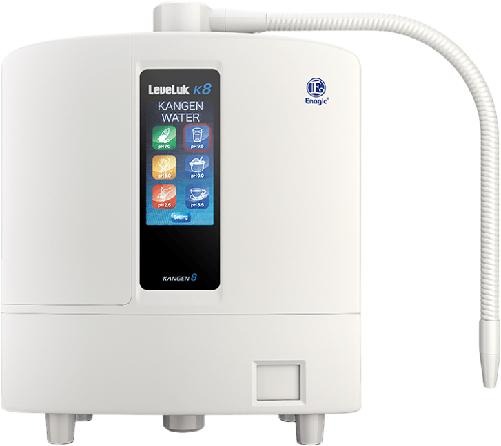 The K8 is extremely user-friendly, thanks to a large full color LCD panel and clear voice prompts. With just a touch of a button, you can have access to any of the 5 waters you choose. Your machine will confirm the water you have selected with a pleasant voice, and in moments the machine will generate healthy, ionized water through a flexible pipe.